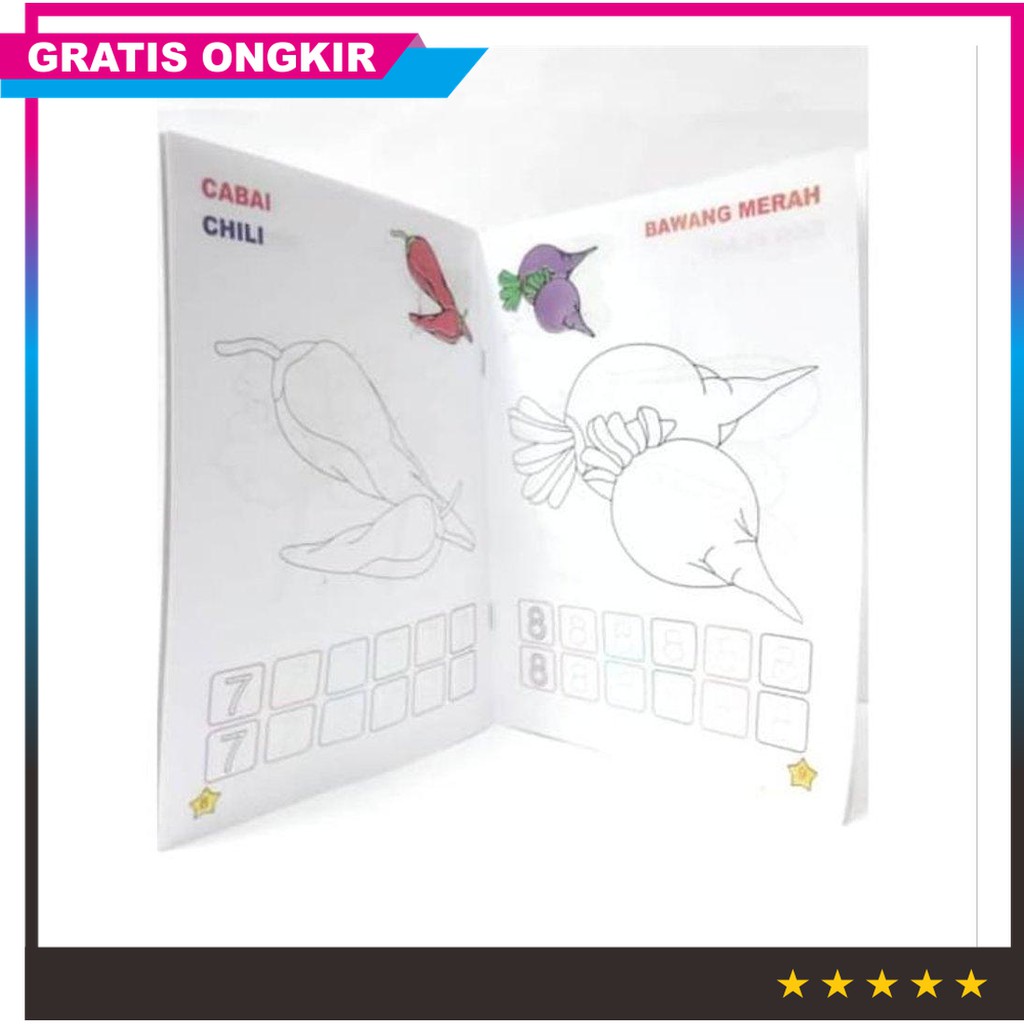 Buku Mewarnai Menulis Berhitung Paud Seri Sayur Dan Buah Buahan Shopee Indonesia